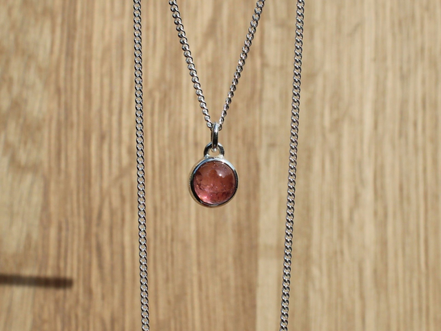 Dieser handgefertigte Anhänger kombiniert minimalistisches Design mit der natürlichen Schönheit des Turmalins. Die filigrane Silberfassung umschließt den Stein, während die offene Rückseite das Licht durchlässt und dem Edelstein zusätzliche Tiefe verleiht. So tritt der Stein in seiner ganzen Pracht hervor.